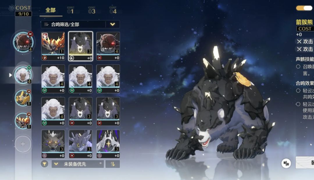 Cost值:满级为12cost,前期倾向于选择攻击、暴击、属性伤害相关的声骸。