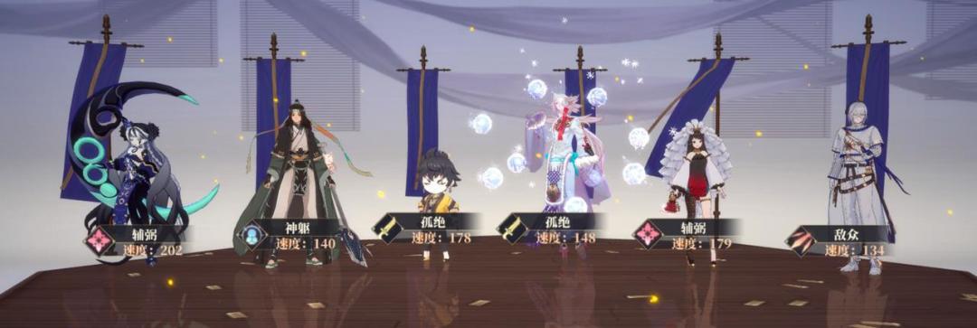 李白依靠群体技能耗血小怪,为共工攒球,同时叠加御剑效果;菟丝子进一步增加我方输出能力,夕打火提供灵气续航;共工、神武夸父、黄龙可以集火攻击敌方单体,造成爆炸伤害。由于没有治疗角色,因此对李白、夸父、共工、黄龙的四极有所要求,最好激活吸血技能。此阵容十分适合刷伤害的boss关、副本、山海司驺吾等pve关卡。