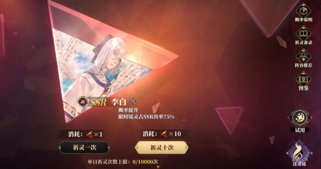 镜心紧缺的平民玩家可以抽一个本体,毕竟作为联动ssr镜灵,以后可能没有返场机会甚至绝版,后续需要使用时也可以利用闲叙和万能碎片升碟。