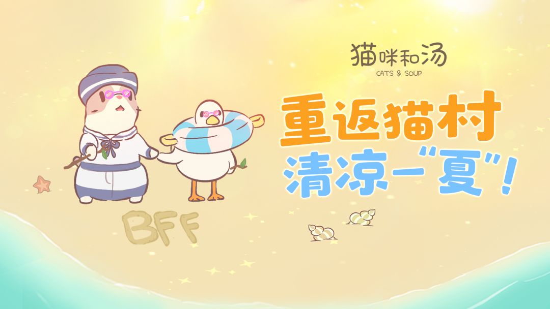 猫猫和鸭鸭爪牵着爪,在沙滩上写上朋友的约定