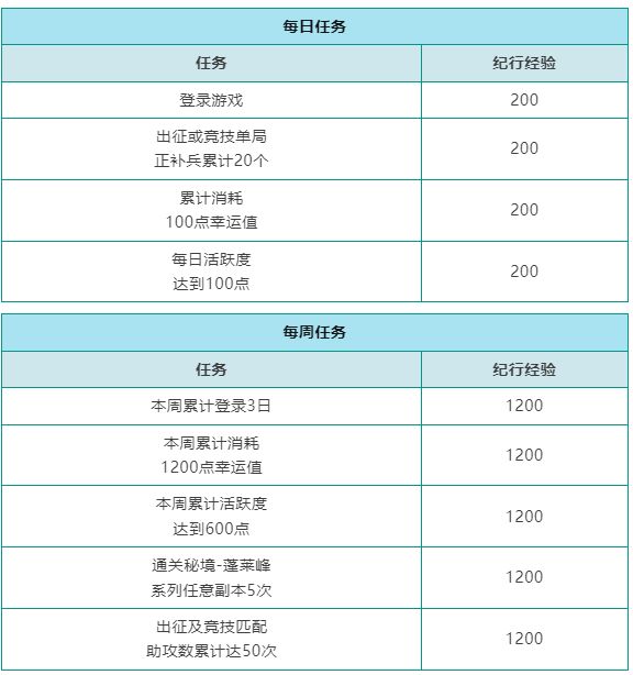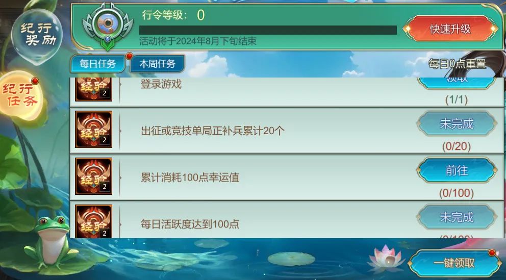 纪行分为普通行令和高级行令两种,上方普通行令奖励,下方为高级行令奖励。