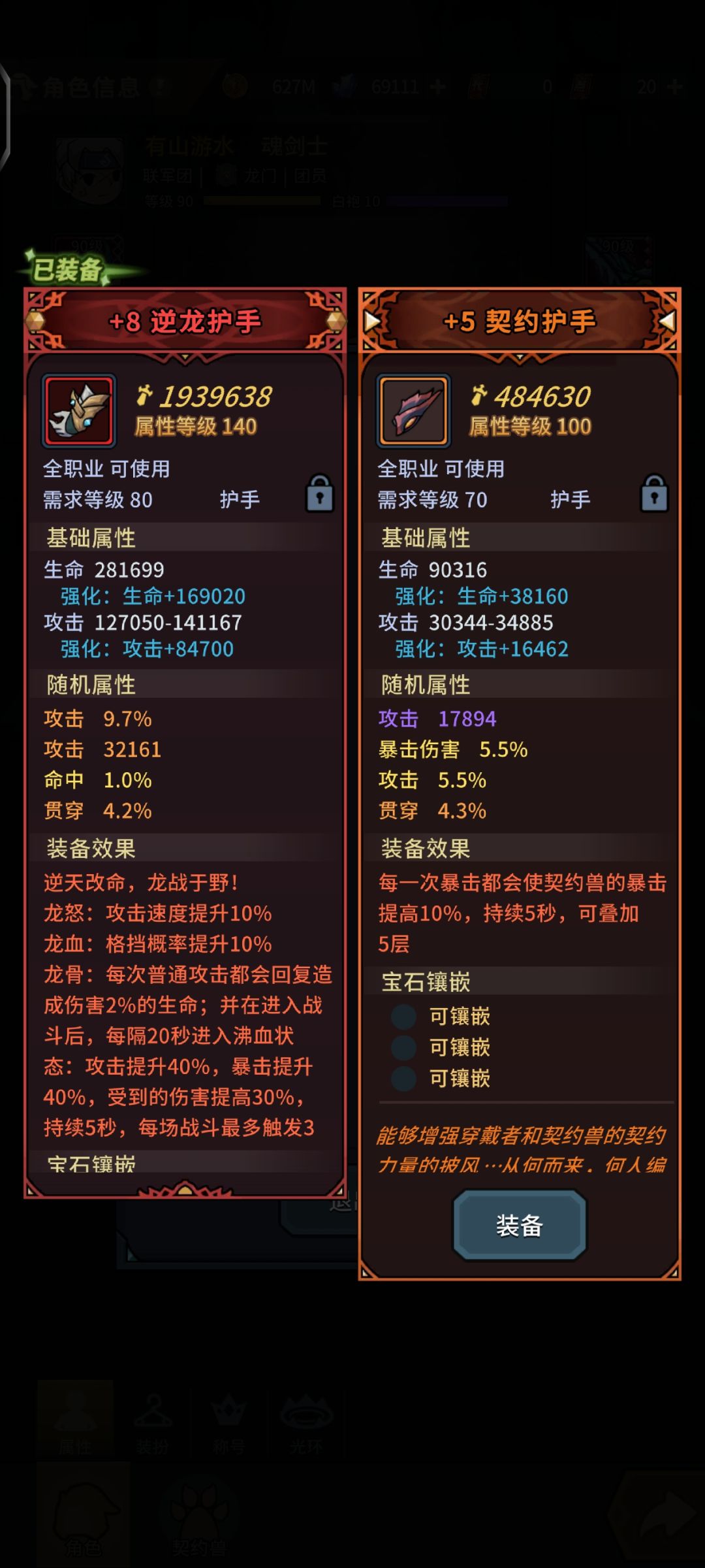 2.其余装备对老人来说,头是契约头,上衣是攻速上衣,鞋子依旧是崇高鞋子,护手推荐逆龙,然后冰封2,宠物就是蘑菇卡卡马修,加一个回血系的,契约护手在这里优先级不如契约头,逆龙护手还是很强的。