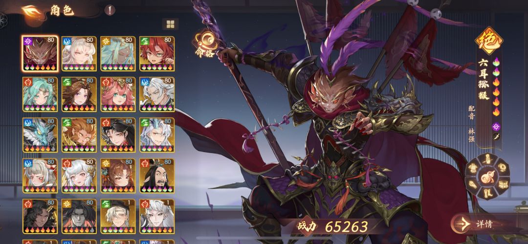 资源有限,只给8个角色带了装备,速度从快到慢分别是蜘蛛,狐狸,地藏,嫦娥,杨戬,六耳,红孩儿,孔雀。其中嫦娥 地藏 红孩儿必选,剩下的位置看对面选人情况。
