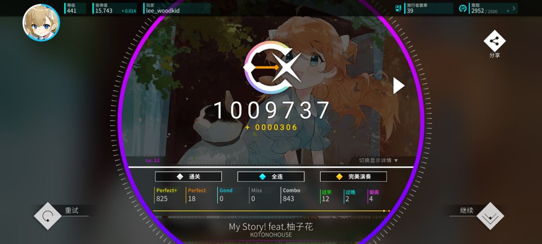 听说rotaeno要30号要改rating计算了,疑似没有r10了,于是打算在更新前推上16,先鞭了my story十遍填满r10,然后连收三首12+。然后今天中午吃完饭随手开了一把daydream居然收了,刚好点不差摸到16线
