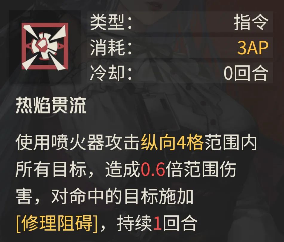 那接着我们可以试着用基础技能【热焰贯流】来打起手式,后续便能再输出两次,但类似于这样来打立刻大家就会遇到几个麻烦: