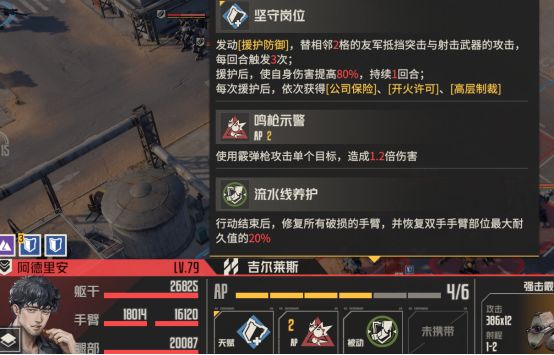 守护者boss以铜墙铁壁般的防御力著称,无法被禁止援护,每次援护后,自身能力会提升一个档次,逐渐获得手臂不屈,射程提升,攻击宕机等能力,所以我们不能让他触发援护。除此之外,其每回合行动结束,会自动回复手臂耐久,并修复破损手臂,这意味着我们需要多次击破他的盾牌,才能攻击到其躯干。