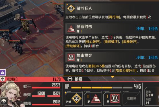 突击boss能够对其攻击命中的目标施加遭受伤害提升,减疗、震慑、缴械等多个debuff,配合多次其多次再行动能力,轻而易举就能使我方机师动弹不得。应对此boss的方法则是不让她攻击,可以通过定身或放风筝等方式实现。