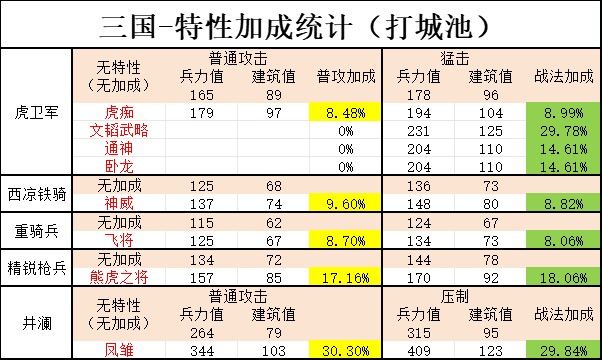 收集到的逐鹿三国和战果红特性已经部分蓝特性的加成比例图