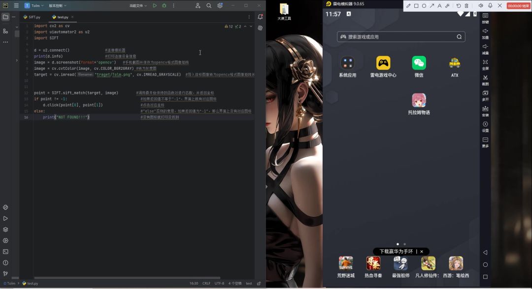 为了自动化首先肯定需要用脚本做点击滑动这些指令。我们使用uiautomator2(一定要预先安装adb)这个软件包实现。具体可以自行了解这里我用模拟器做一个简单示范。