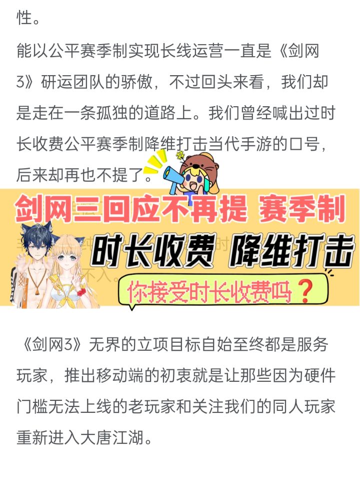 剑网三回应曾经口号💥你接受手游时长收费吗❓