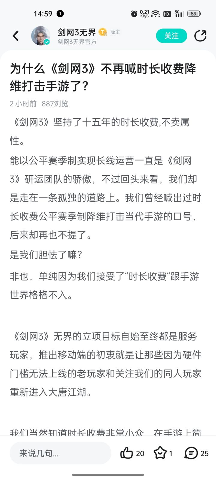 💡非也,单纯因为剑网三接受了“时长收费“跟手游世界格格不入。