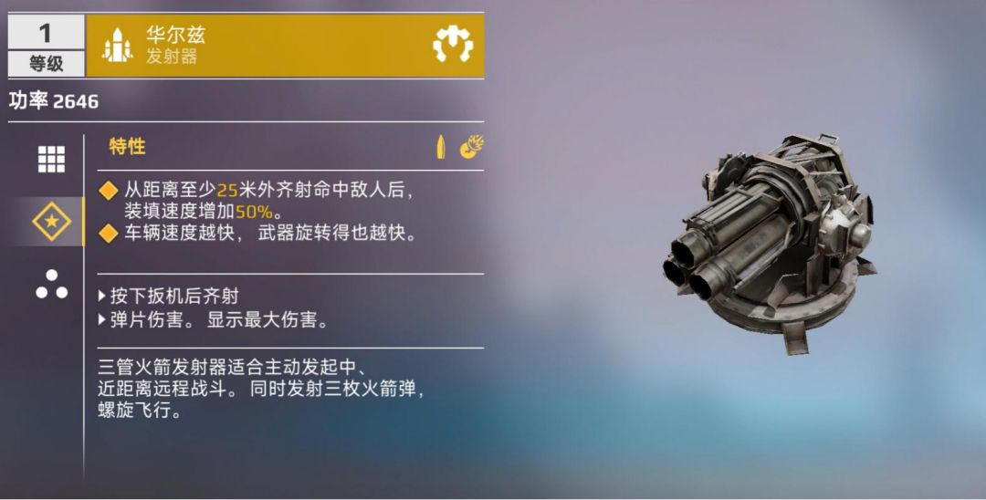 在《创世战车》移动版中,火箭发射器类的武器与加农炮相近,它们也会发射击中时爆炸的射弹,但火箭类武器几乎没有后坐力,且自身重量也较轻。因此,这是一种能够在不牺牲战车机动性的条件下进行火力投射的武器。