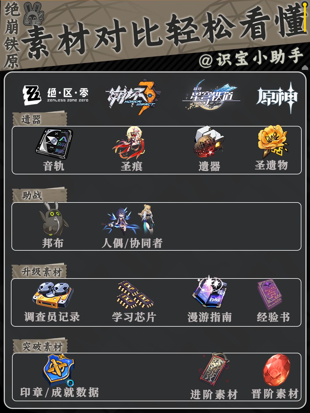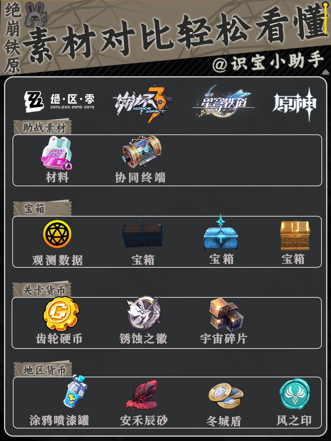 大家好,这里是识宝,正所谓米氏大团结,每当一个游戏开服时,都会有大佬变成萌新,今天给大家带来的是绝区零×崩坏3×崩坏×原神的对比,希望对大家有帮助 。总体上来说绝对零作为一个动作的游戏,相对于原神崩铁来说,它更有点像崩三,但与崩3不同的是它的可操作范围更广,更细,更依赖于自身的操作,只要操作够好,一级刮痧都能刮赢,嗯,7月四日就正式公测了,大家敬请期待。
