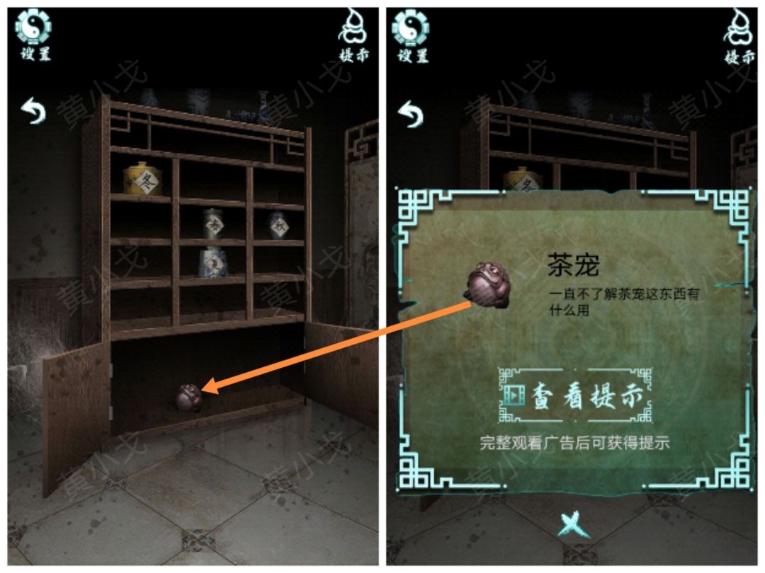 20.点击茶柜,获得【棋盒】(注意茶罐的形状及上面的标签)
