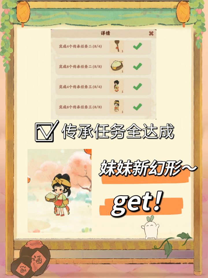 整理了下所有奖励,大家可以挑自己想要的东西去做酒楼任务,也可以像我这样均衡发展,以做完所有传承任务拿到全部奖励为目标~