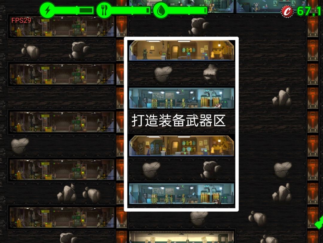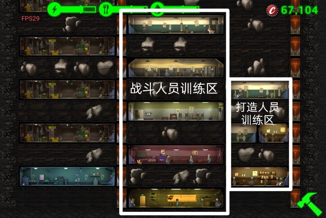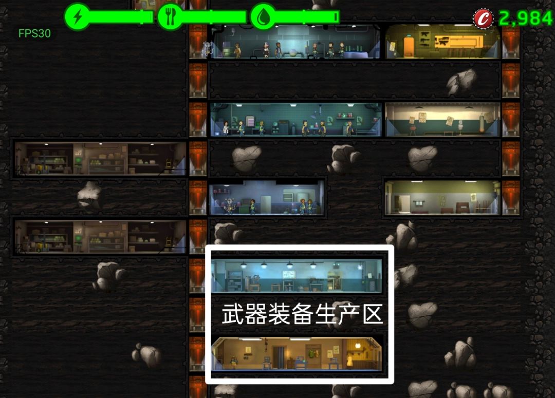 ,暂时把之前练好把之前练好5e高的装备生产人员放到这里工作,同时将退役的餐厅人员放到健身房练e,在都练到五以后,回到量子可乐瓶装室工作,因为第一层要防守入侵,高a代表着攻击频率快。按需求往出踢人,并不需要那么多人,我就维持在82人,资源生产全满30人装备武器生产全满24人,外出任务9人,战斗人员培养20人(九个外出任务人员,11个废土探险人员)