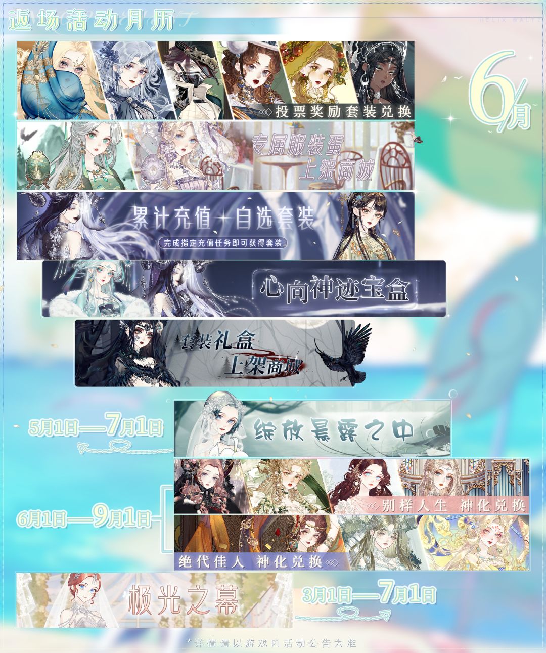 6月1日6:00-7月1日5:59,商城限时上架部分活动礼包。