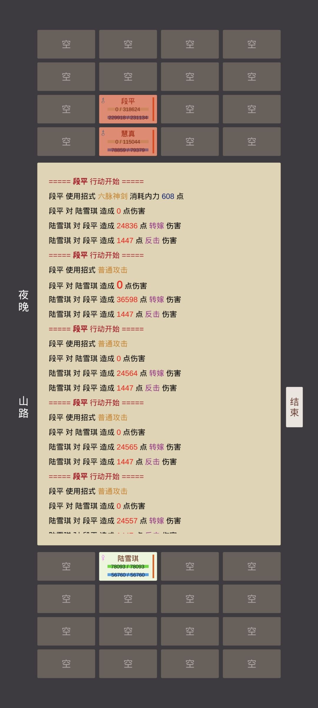 对手 2000+的行动力且可以秒人的,毒术降体力,或者打控住的套路都没用,因为你进战斗出不了手,行动力差距过大,对手直接 一回合 15 连动(并非上限,因为第 15 次过后被我反死了,不死估计还会打下去),只能是挨打且输出的套路,这种套路目前有三个: