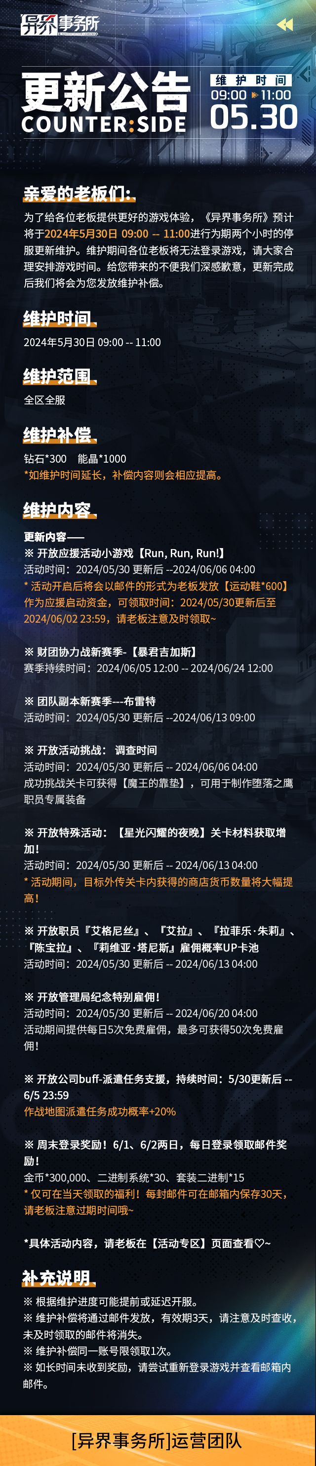 更新情报丨开放管理局纪念特别雇佣,艾格尼丝、陈宝拉等职员复刻