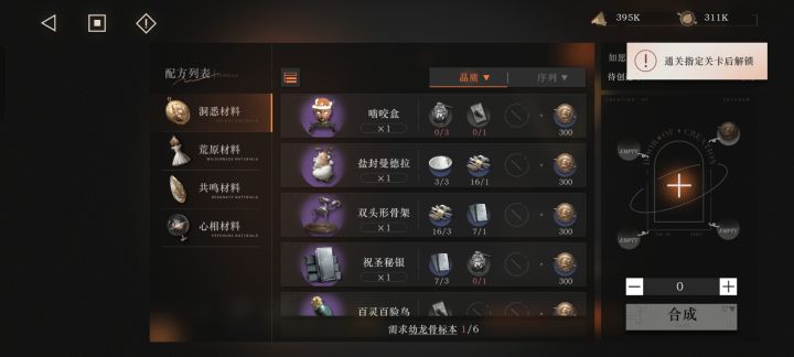 那个泉水已经解锁到四级了,想要合成幼龙骨但提示我说需要解锁特定关卡