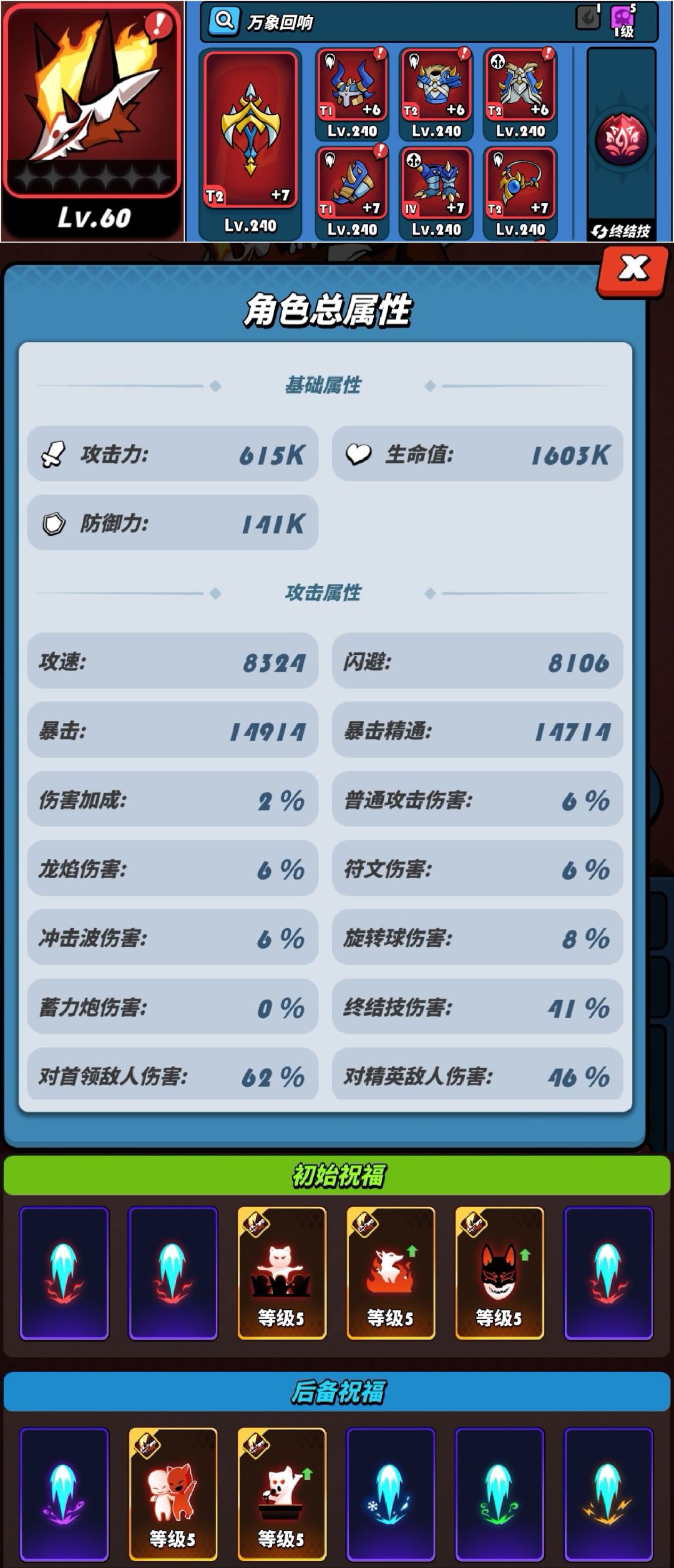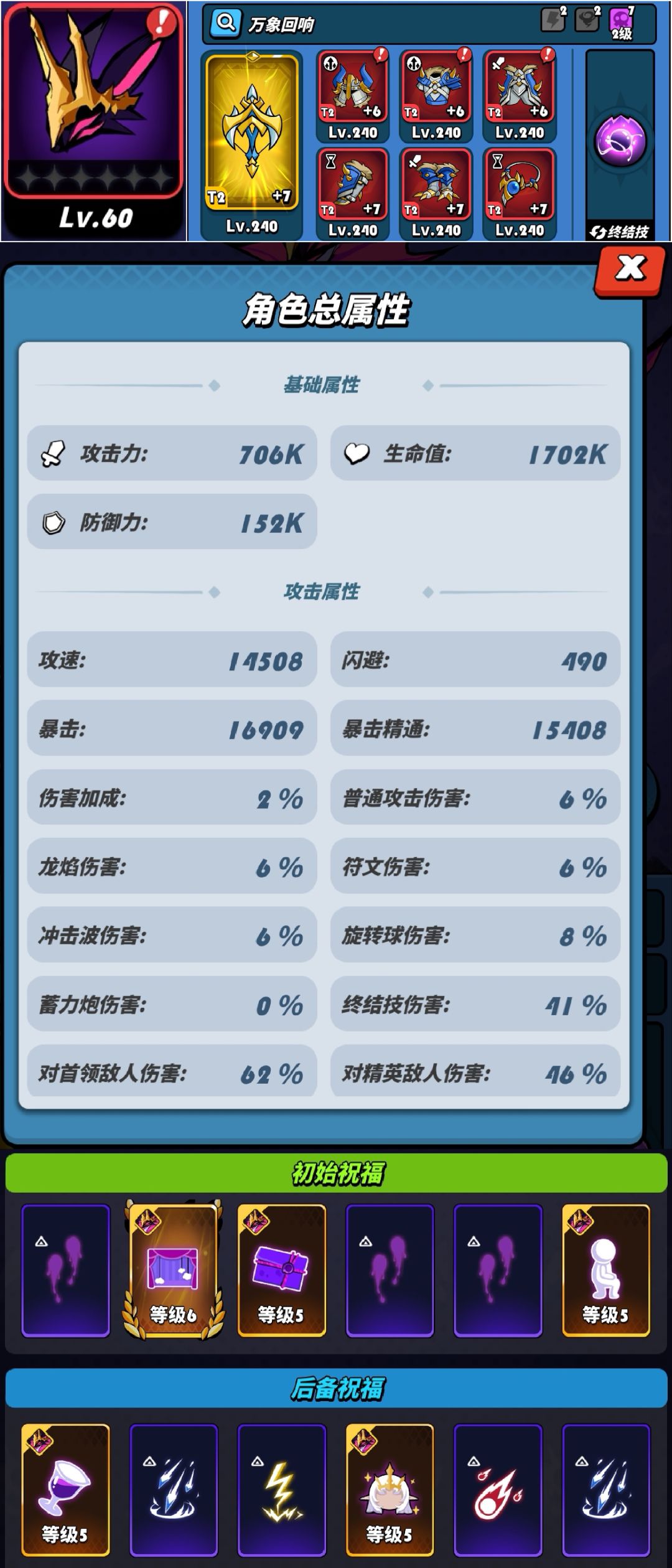 初始祝福拿到6火+6蓄力炮,触发2羁绊火的增伤,游戏中补满9蓄力炮