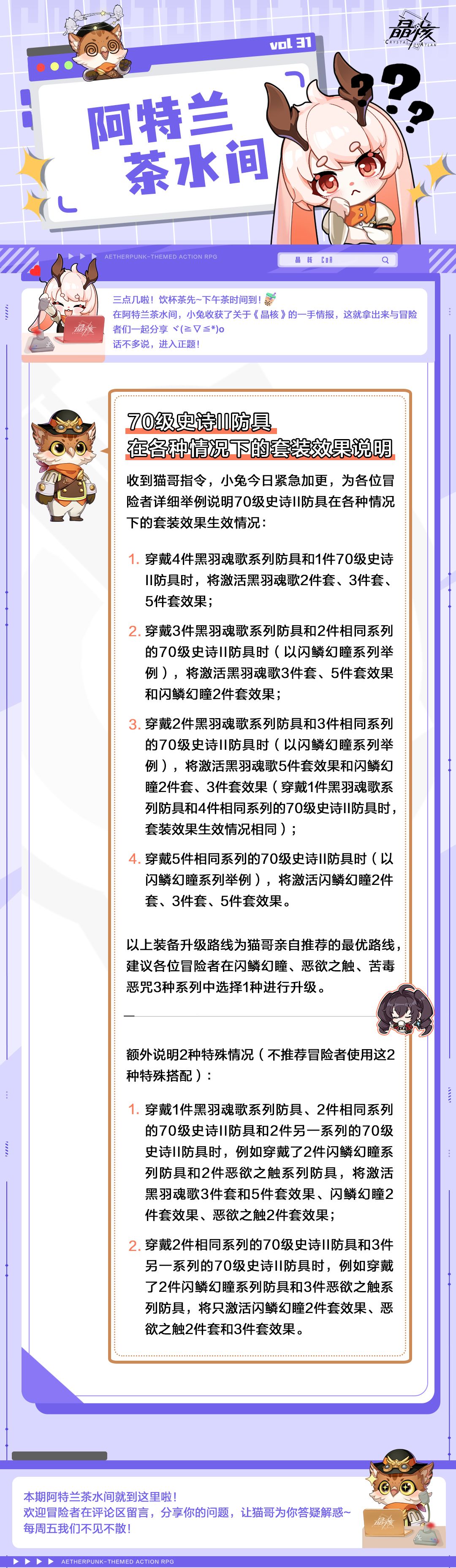 阿特兰茶水间31丨70级史诗II防具在各种情况下的套装效果说明