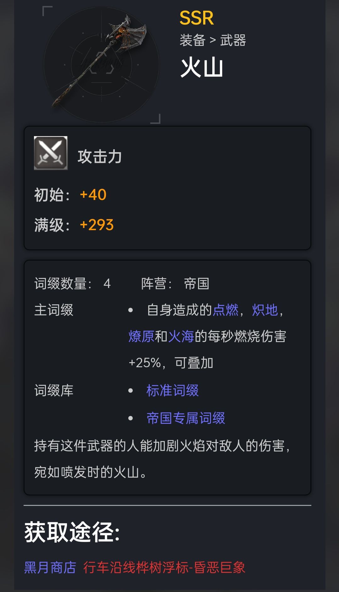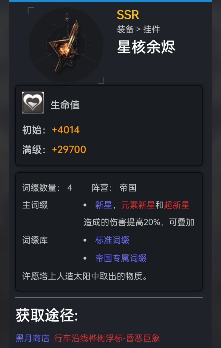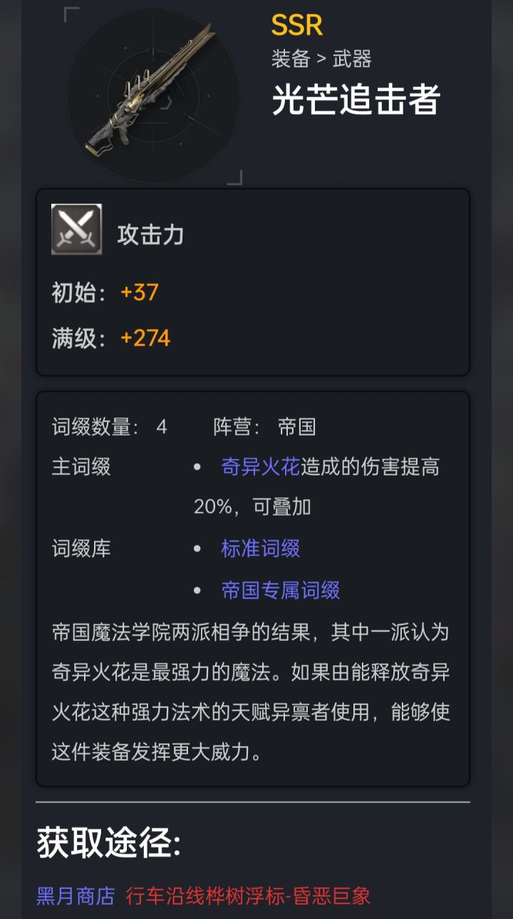 这些装备如果在商店刷出来,一定要买一个,因为平时打紫树,真的真的不一定会给,可能这里面有的装备大家都没注意过,像我星核余烬刷出来就没买,现在很后悔,野心是商店买了一把,所以推荐一下每天沿途遇到的紫树必打优先级:昏恶巨象>尘鸣游磷>鸣爆虫母,建议是遇到就打,因为目前SSR里面,打其他紫树给的装备,还是没有这三个稀有,或者说好,当然可能七弦弓不算,像炽焰侵蚀者,暗夜寻星,北方荆棘什么的我就一把,但其他的装备,包括暗艺比较喜欢的狡诈背叛,不可见之触,·,,严冬,熔岩挺多的。