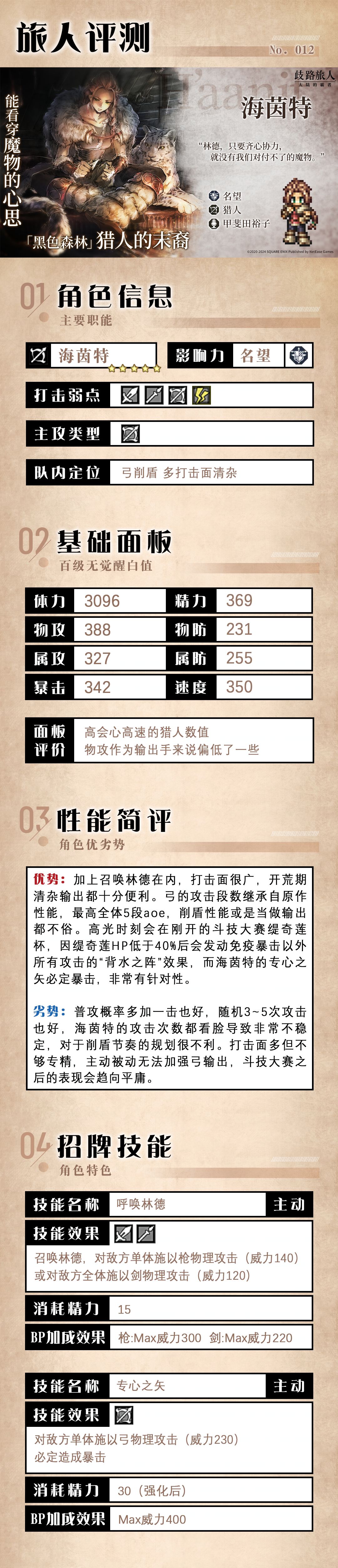 本篇测评将专注于对猎人海茵特战斗强度的分析,不涉及其背景故事或其他非战斗相关的因素。