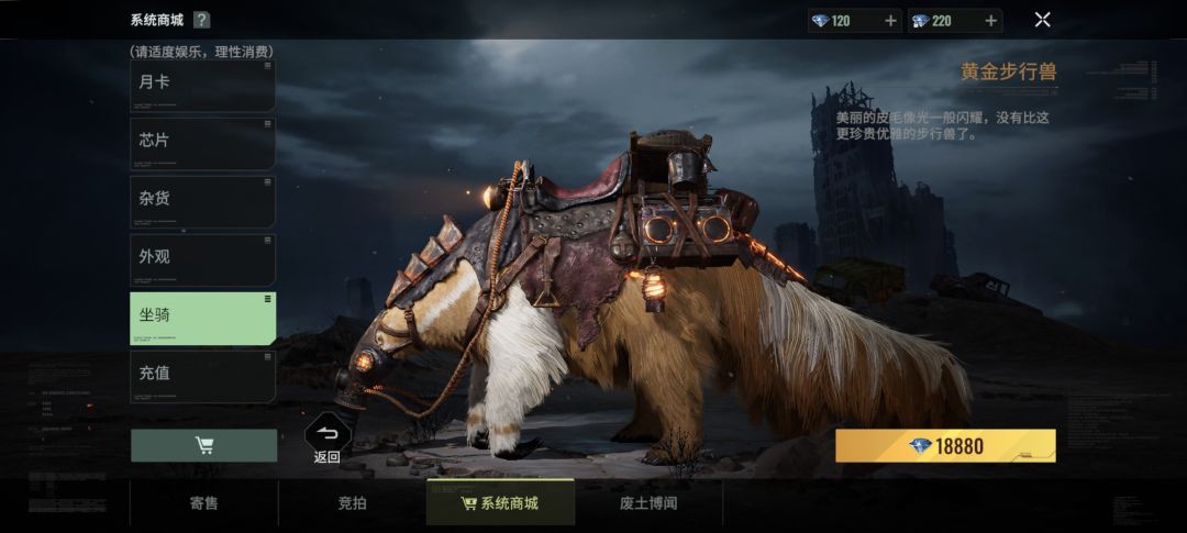 坐骑:如果说武器装备可以买,可以靠欧气,那坐骑就只能靠氪了,1888一个金色坐骑,直接领先别人两个级别,紫<绿<金,平民只能靠绑钻买紫色的或者第一个秘境抓的也是紫色的,除非你是欧气爆棚,坐骑直接6个绿天赋不然比不过氪佬