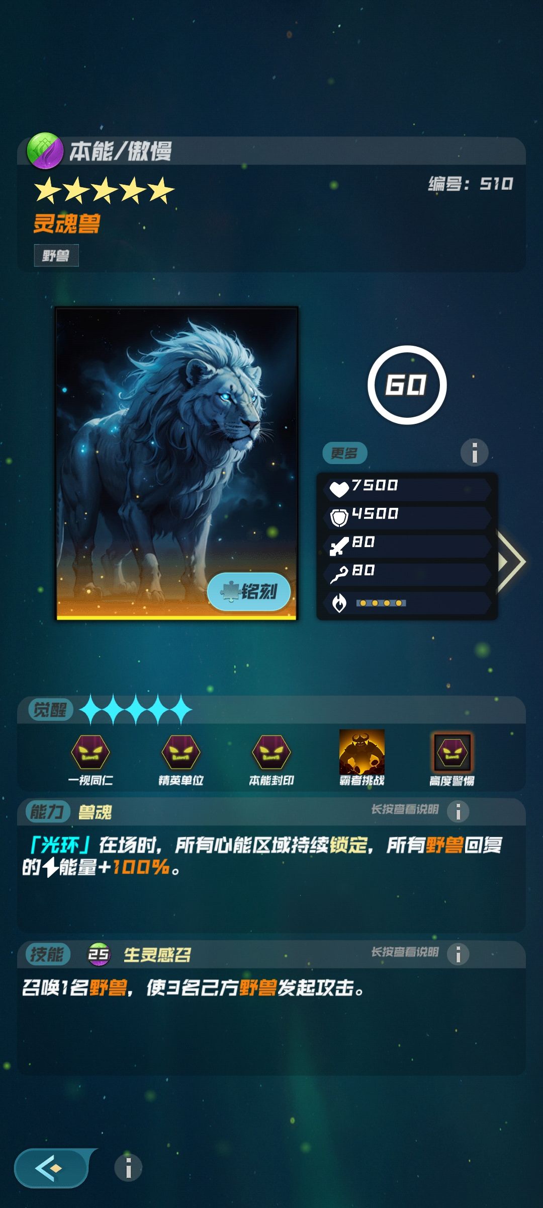 (光环)所有心能区域持续锁定,所有野兽回复的能量+100%。