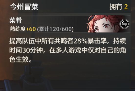 食物制作 特定人物有特色料理加成(食物属性暴击)