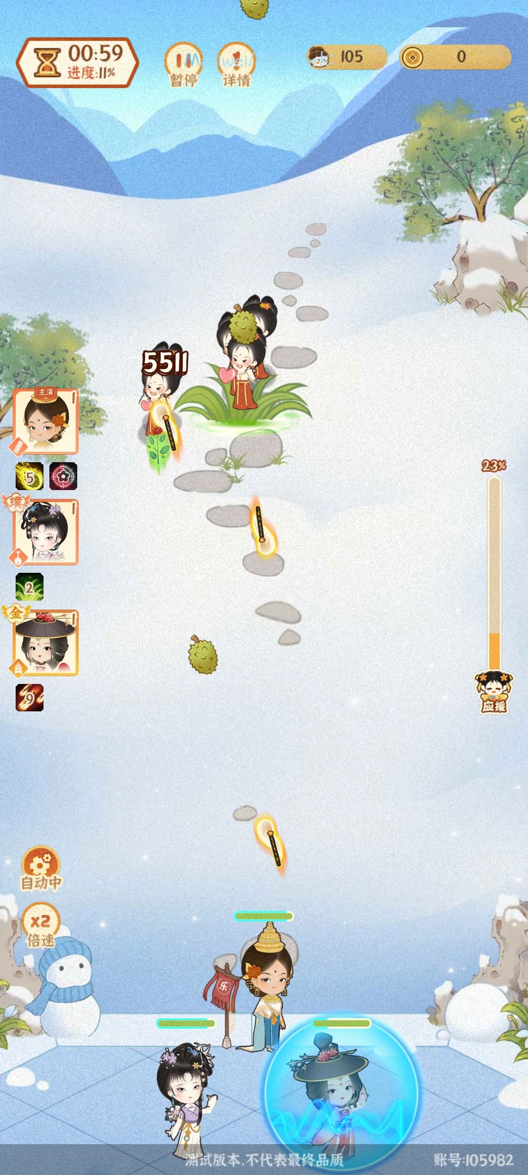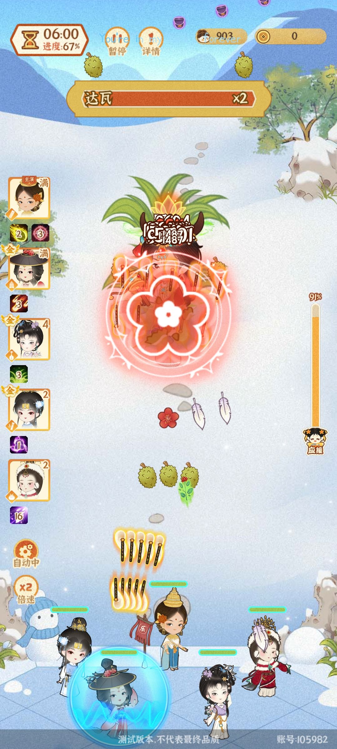 首先,我觉得泰泰,林妹妹,拂女,在前期直接乱杀好吧,特别是还没有怪会攻击的时候。后期有怪会攻击人时就需要嬉嬉了,因为她的帽子会分裂几个帽子返回打那些直接贴脸的怪。泰泰的话我一般开局直接用,因为她的大象爆率很高,一下就可以撵一堆怪榴莲是范围伤害,林妹妹的草减速真的很重要所以我一般第二个就用,可以拦大怪靠近来攻击我们。而且基本上满级之后可以拦住好多小兵而且草也还有范围伤害。第三个我就会放剑女,她的那个剑也可以回旋挺好的。
