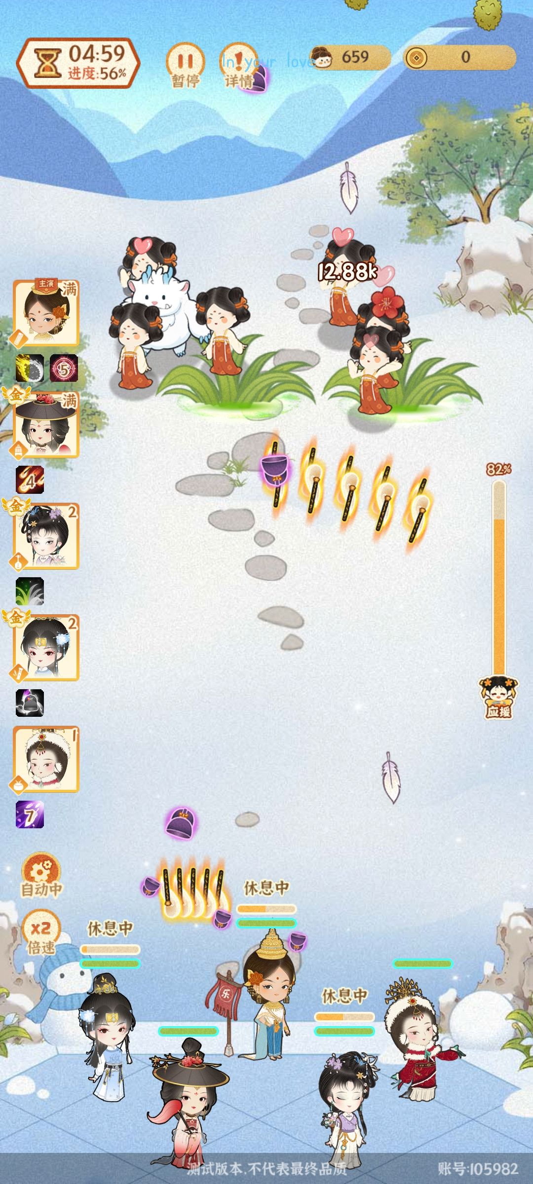 玩了六天以来,第一感受就是,每局游戏有点慢了,一局平均10分钟,真的有点浪费时间,只有2倍速,我觉得可以加快点速度了,通关太慢了,而且还有挑战要打,现在是开挂阶段,随便氪金不要钱,所以位置的升级比较快,那么正式出来之后,氪不了金的人就很不吃香,感觉会卡关很久……