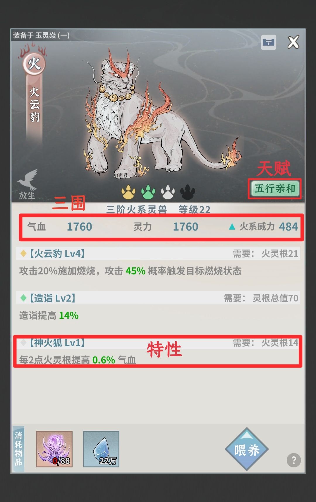 ➤0.9版本开始,天赋可以直接赋予,在狐尾岛的灵尾坊炼化神魂(100封灵石+10万修为,封灵石在狐尾岛周围打怪掉落2-5个,消耗5体力),每次赋予天赋会消耗本体灵兽同属性的灵果10个