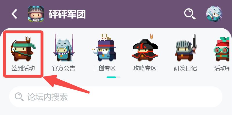 方式二:进入砰砰军团TapTap论坛,点击导航栏处的【签到活动】即可成功跳转活动页面。