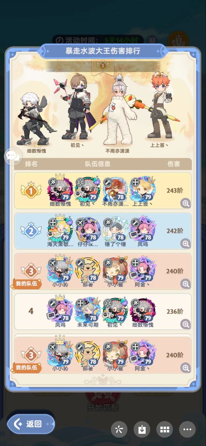 关于新活动大暴走细节。目前来说这活动对T的要求稍微小一点,后面对治疗还是蛮有要求的,本人T少一个坚韧血脉,跟着高战也能混240层如果不是有失误250应该不是问题。130k的治疗到后面奶不住了,哪怕后面运气好都基本是木区域跑图,大概150左右够顶到最后(全能属性过关),这里说实话大暴走T是最需要操作的,举个例子,除了旗子的cd有分配以外,有去火区域不开嘲讽顶盾反伤加伤害的这个操作就没几个人做,还有很多小细节,你得兼顾跑图 和技能的操作,确实需要集中精神。