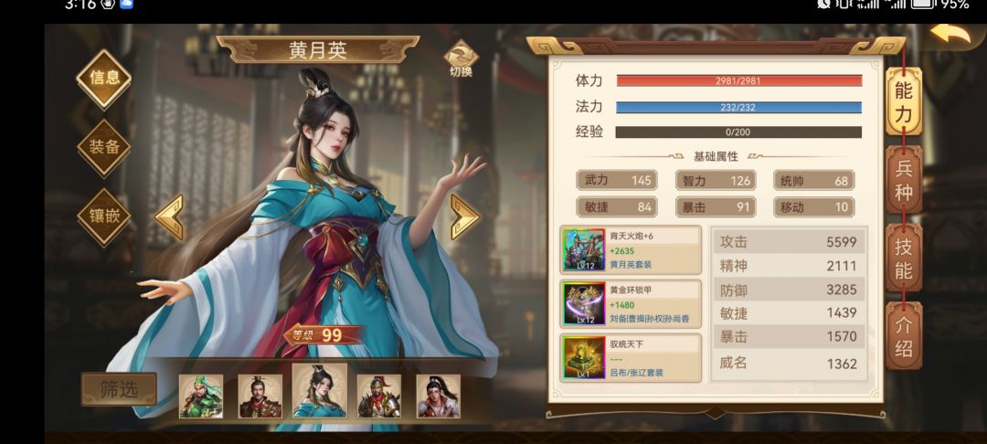 (二)黄月英 专武+金丝+任意辅助+3赵云魂