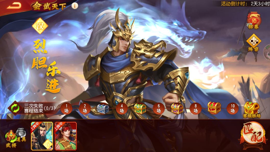 2、在开启赛程或战斗胜利时会获得招募次数,累计0-9胜时,相应地会获得3、1、2、1、2、1、2、1、2、1次招募机会;