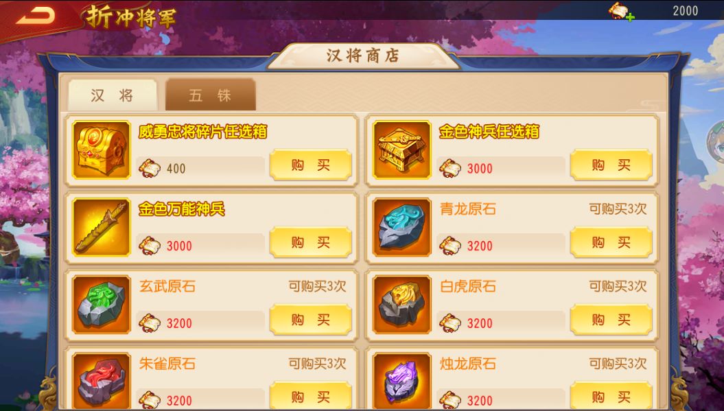 1、活动商店分为汉将商店与五铢商店;
