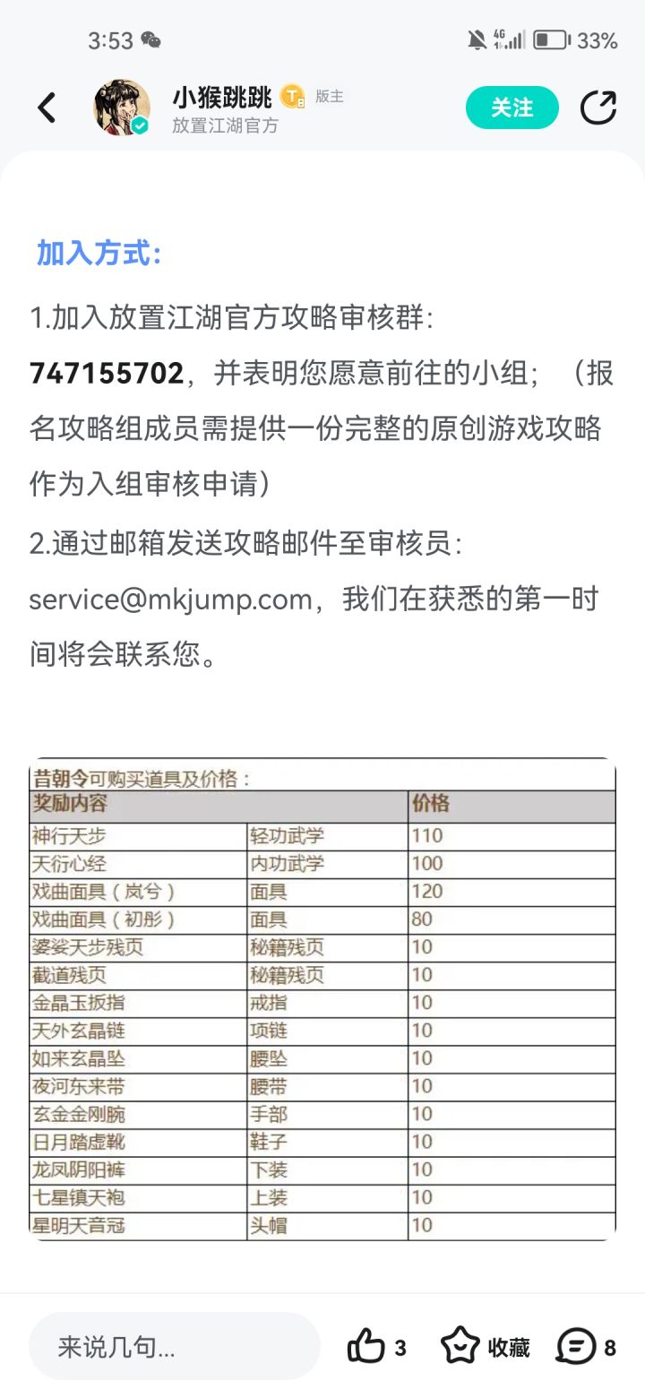 下午三点刷材料本刷到晚上八点还没进去,也是蛮好笑的,就到这里吧,下面再说就不礼貌了。这边就不细说了,下面简单介绍放置江湖本次招募。