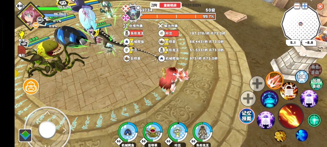 半肉情况下持续输出不如巨鄂草,但是在开始放技能的那段时间输出比巨鄂草略高。