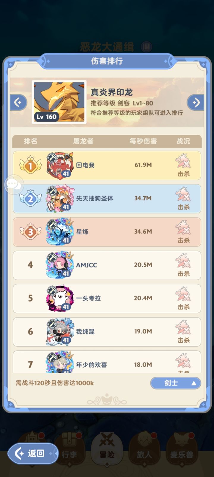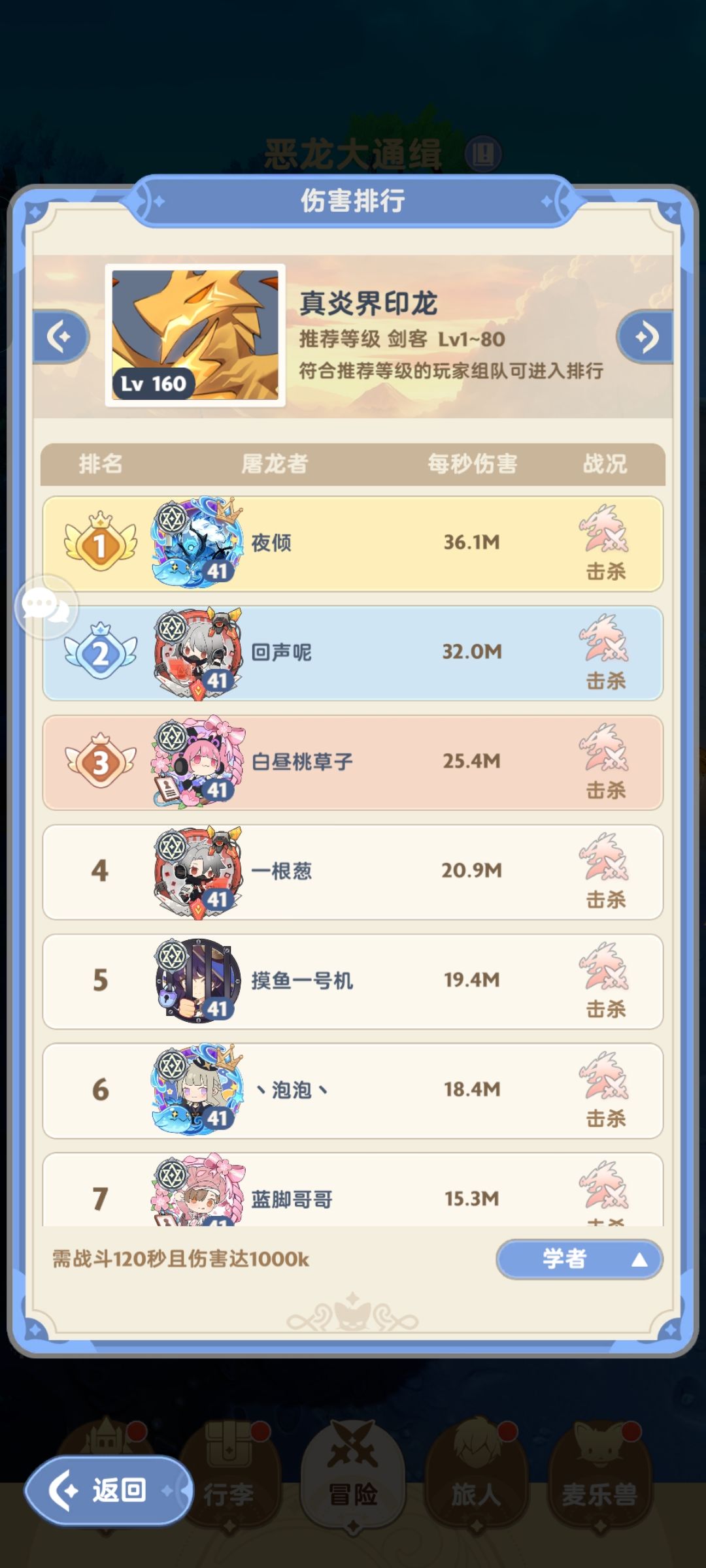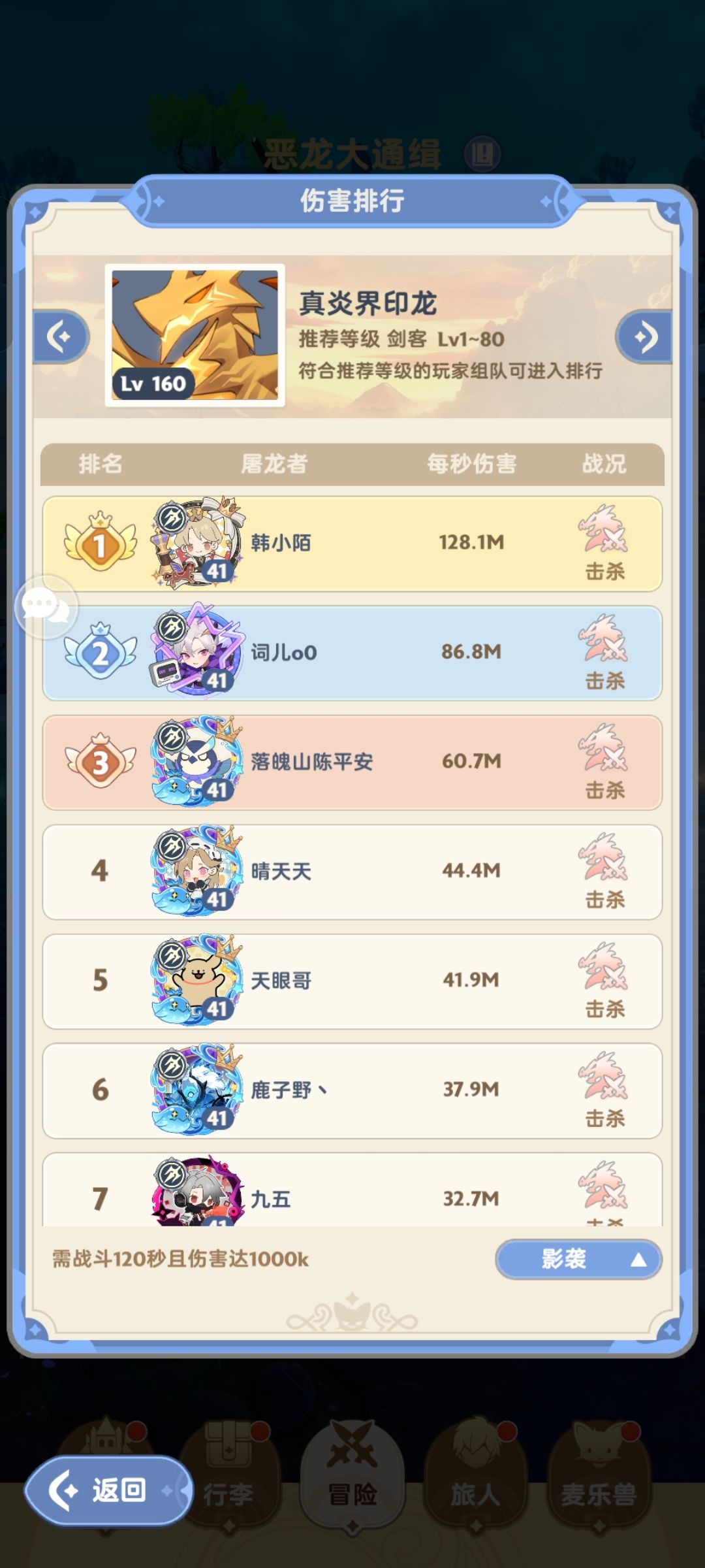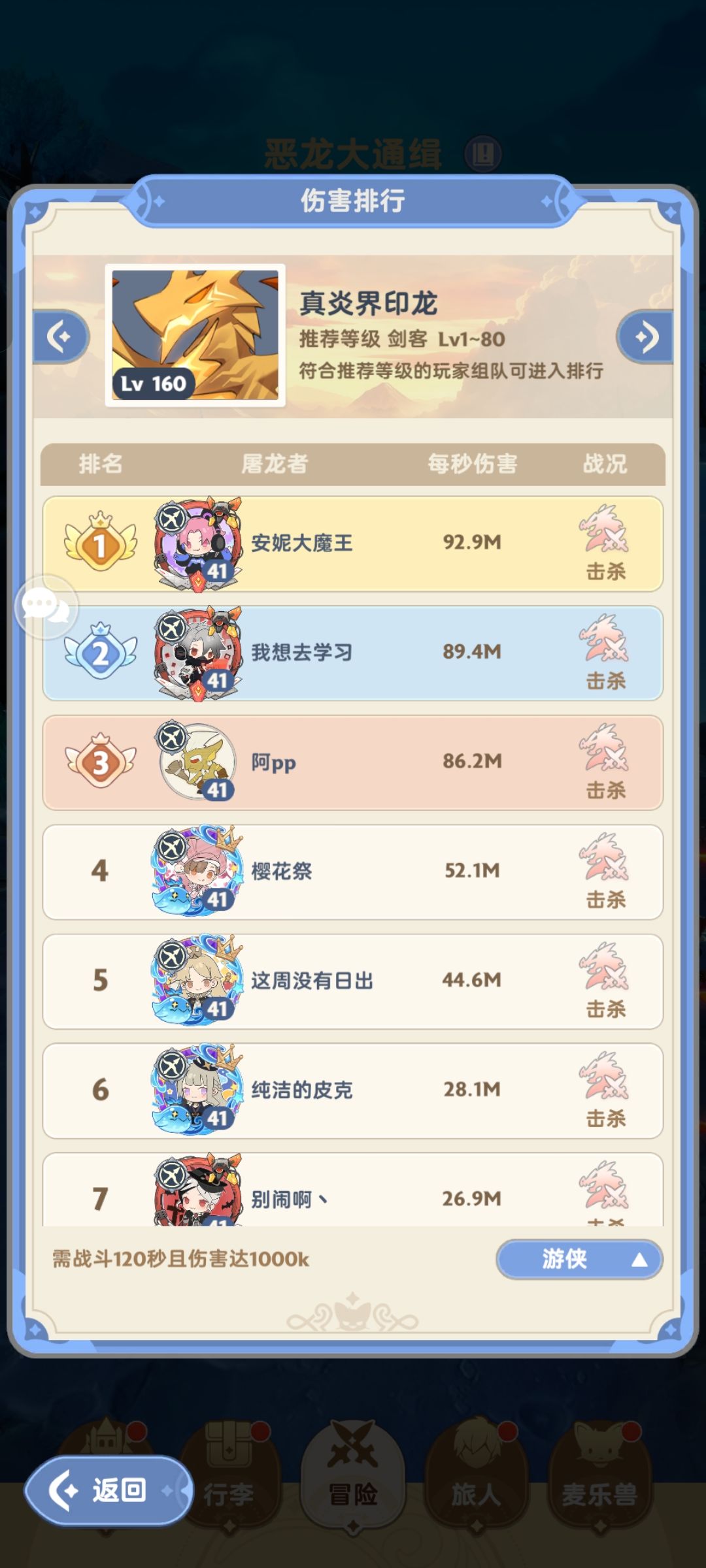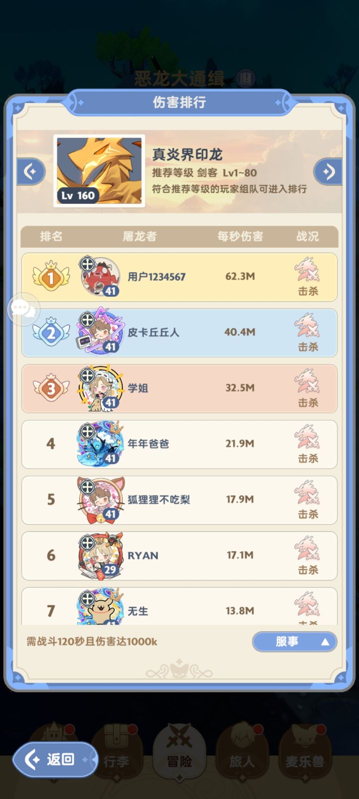 击杀龙越快上榜上伤害记录越高 30/40秒击杀
