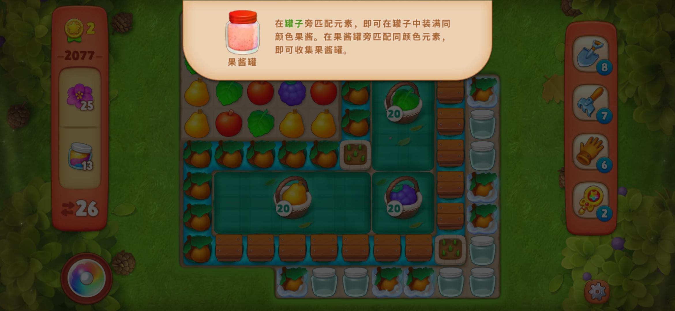 【关卡攻略】这一关的难度:果酱罐需要先注满,然后匹配对应的颜色才能消除。橡木数量多而且需要消除两次。