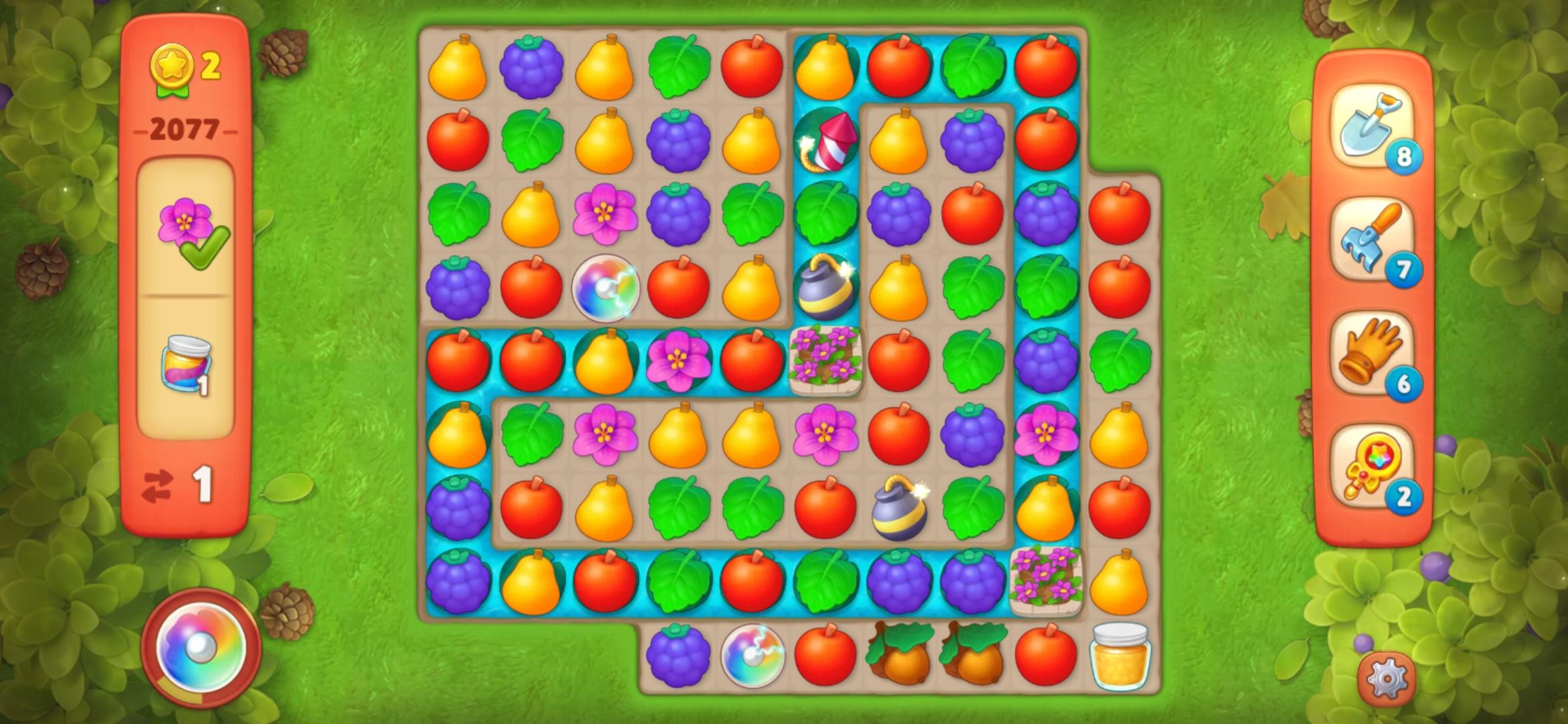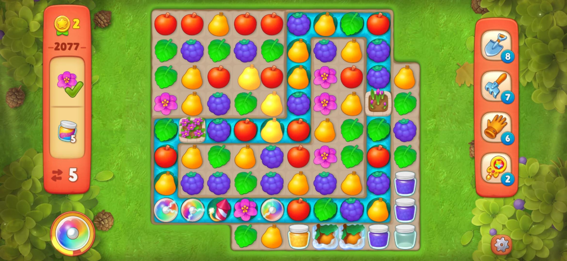 花朵收集没有重点强调,是因为用大范围消除道具和收集果酱罐的时候,就已经会收集到很多花朵,如果还是不够,可以在最后几步的时候重点去收集一下。