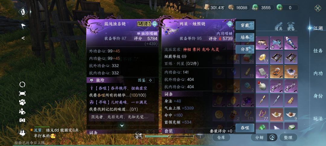 过渡装备:混沌项链(如果当天没混沌项链,可以选择天荒英雄链先用,第二天合成书刷馄炖就行) 自选81/83百炼 树灵2件套 阮阮戒指(后面刷蛇出91可以先用元素戒,阮阮上位出来蛇戒换上位)