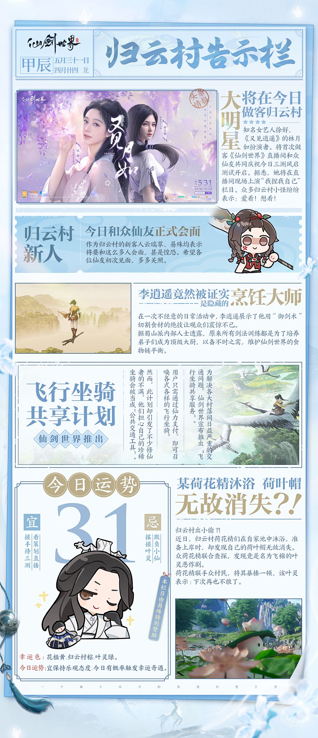 仙友们好!欢迎走进今日《归云村告示栏》节目,我是你们的限定主持人小仙!