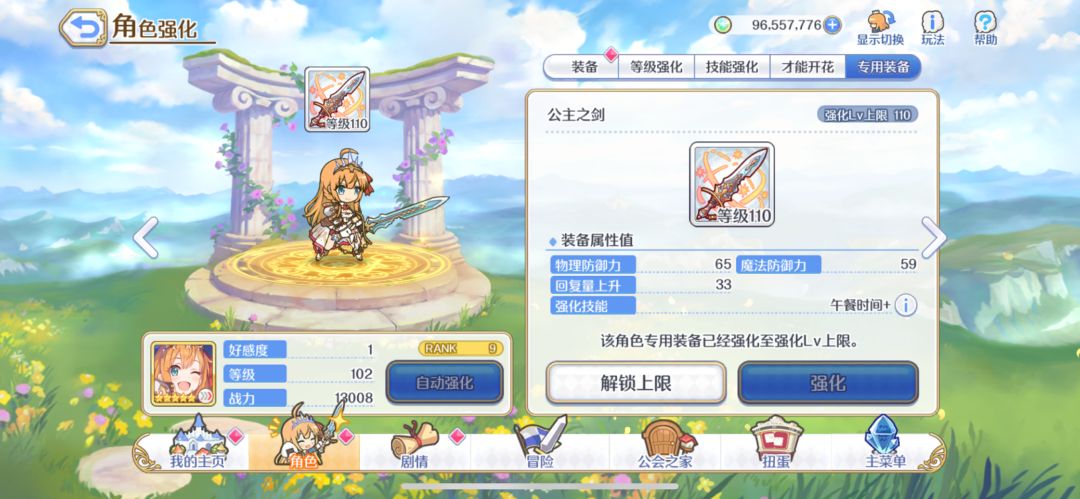 专用装备将分角色依次进行开放,专用装备的可强化等级上限也将随着游戏的进度逐步提升。本次版本更新后,将开启日和莉、优衣、怜、咲恋、胡桃、望、佩可莉姆、可可萝、凯露以上9名角色的专用装备,专用装备等级开放上限为110级。