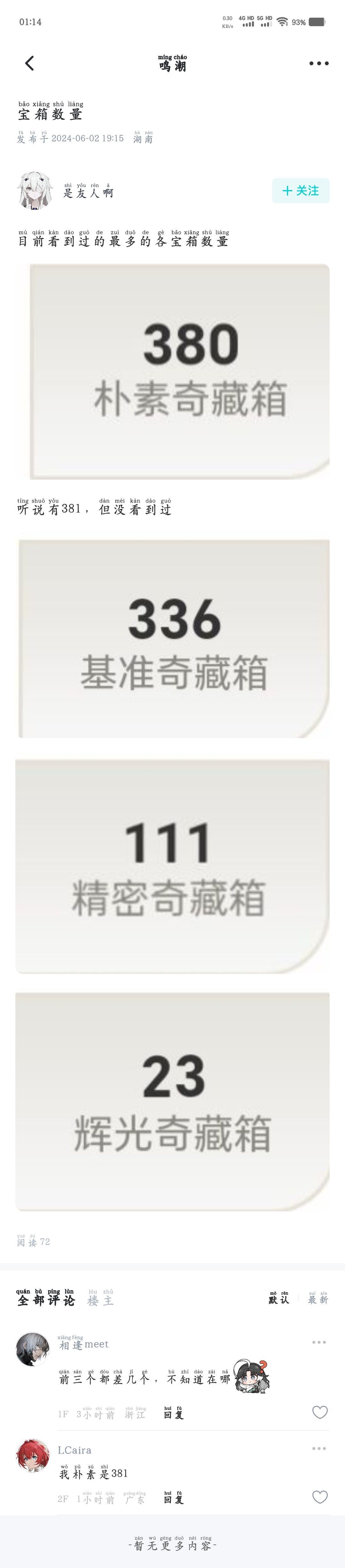 各个宝箱数目前有库街区截图的是