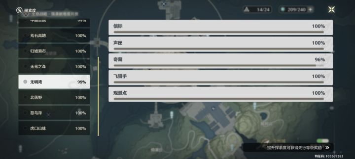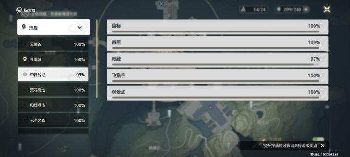 除了图里这两个地方,其他的探索度均为100%