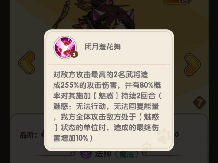 大概率是银色限时神将,策划是懂得克制玩法的,身为魔阵营控制回能却没给速度而是给了减伤。两回合魅惑最高攻击是硬控两回合,魅惑结束回能回血,普攻和技能给魔阵营回能,看来还是舍不得减伤机制,配合灵芝华佗,魔阵营整个起飞且相当全面,属性上得堆点速度。上一期的冰莲甄姬有用了,能解控。